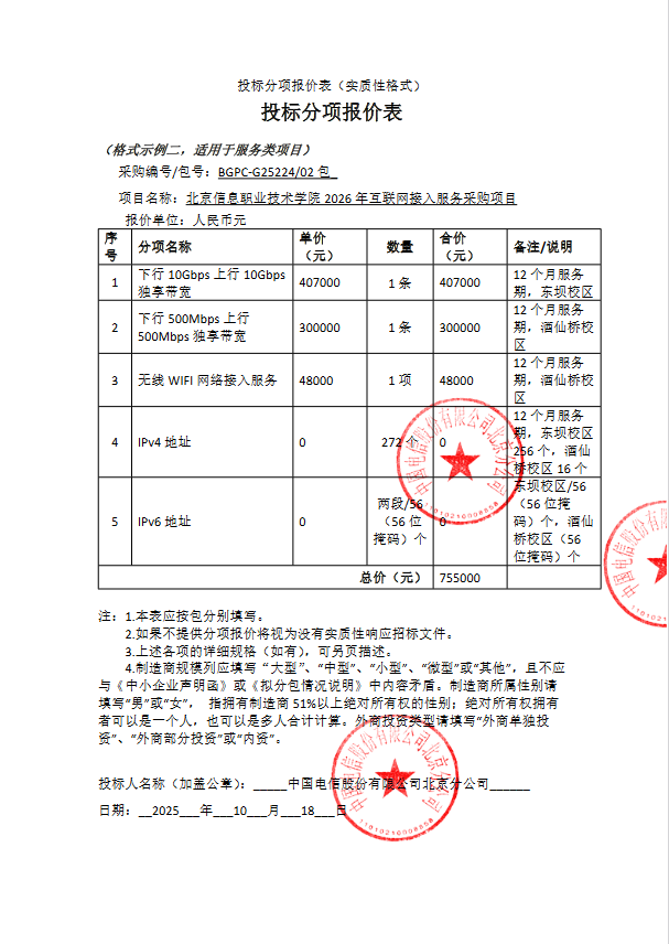 二、项目名称:北京信息职业技术学院2026年互联网接入服务采购项目