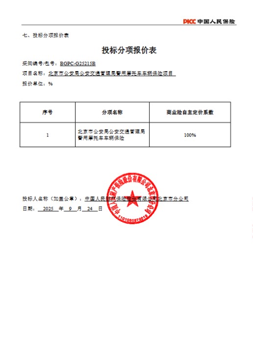 中国人民财产保险股份有限公司北京市分公司 | 100% | 详见采购文件 |